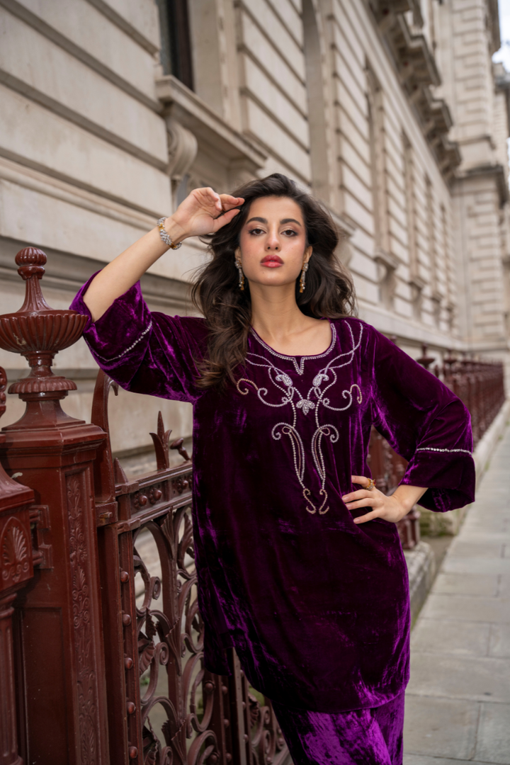 The Royal Plum Co-ord Set brings together elegance and versatility in one stunning ensemble. Designed in a rich, regal plum shade, this outfit can be easily dressed up or down for any festive occasion. Its flattering silhouette and luxurious finish make it a timeless choice for celebrations, dinners, and special gatherings. Whether styled with statement jewelry for a glamorous look or kept minimal for subtle sophistication, it promises effortless charm every time you wear it.